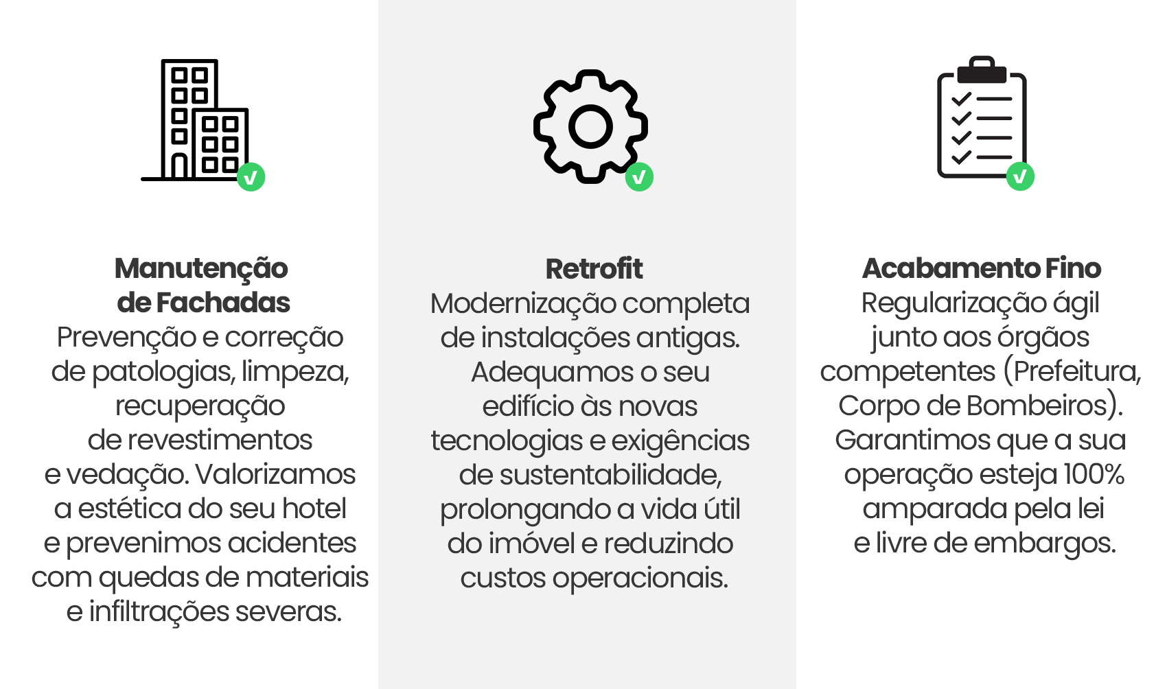Infiltrações, fachadas desgastadas pelo tempo e instalações fora das normas atuais não apenas desvalorizam o seu ativo, mas colocam em risco a segurança dos hóspedes e a reputação da sua marca.